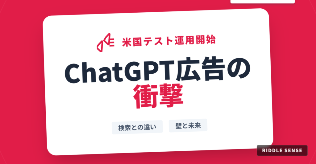 2026年1月16日、OpenAIがついに「ChatGPT 広告」のテスト導入を正式に発表しました。 まずはアメリカでの解禁ということですが、マーケターの方はこの時を待ち望んでいた人も多いはず。 これまで「広告なし」のクリーンなUIが特徴だったChatGPTですが、週8... -
